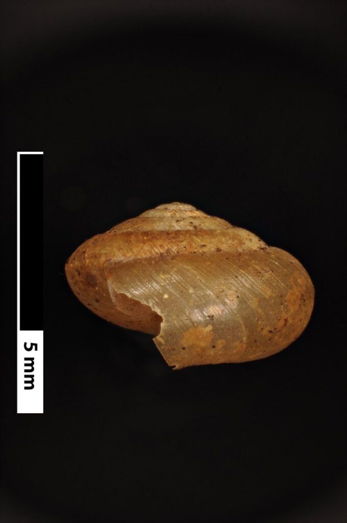 The apex of this species’ shell is relatively high and spire acute. The final whorl may be slightly angular, often with a light-colored band at the periphery. The shell texture of Ventridens intertextus consists of very fine oblique and spiral striae intersecting each other. The aperture is rounded with a thin lip with a callus lining within, and is a bit reflected close to where it meets the previous whorl. The umbilicus is tiny. This species can be differentiated from V. ligera by looking at the base, which has spiral striae and lacks the gloss present on V. ligera.