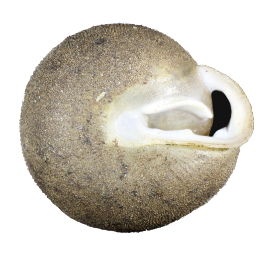 Photo(s): Views of an Inflectarius rugeli shell by Dan Dourson ©, with aperture-plane view of an old shell Ken Hotopp ©.