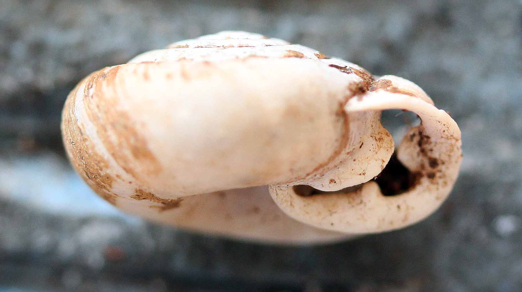 Photo(s): An old shell of Triodopsis fraudulenta, exhibiting the prominent parietal tooth and recessed palatal tooth, by Ken Hotopp ©.
